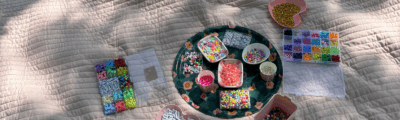 Astuce que j’ai partagée pendant l’atelier : toujours commencer par placer la perle centrale ou la plus imposante pour construire une harmonie autour.