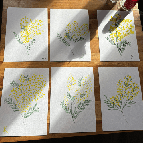 Lors de cet atelier, tu apprendras à peindre un délicat brin de mimosa, étape par étape, même si tu débutes. L’objectif est de te laisser guider tout en profitant d’un moment apaisant et créatif.